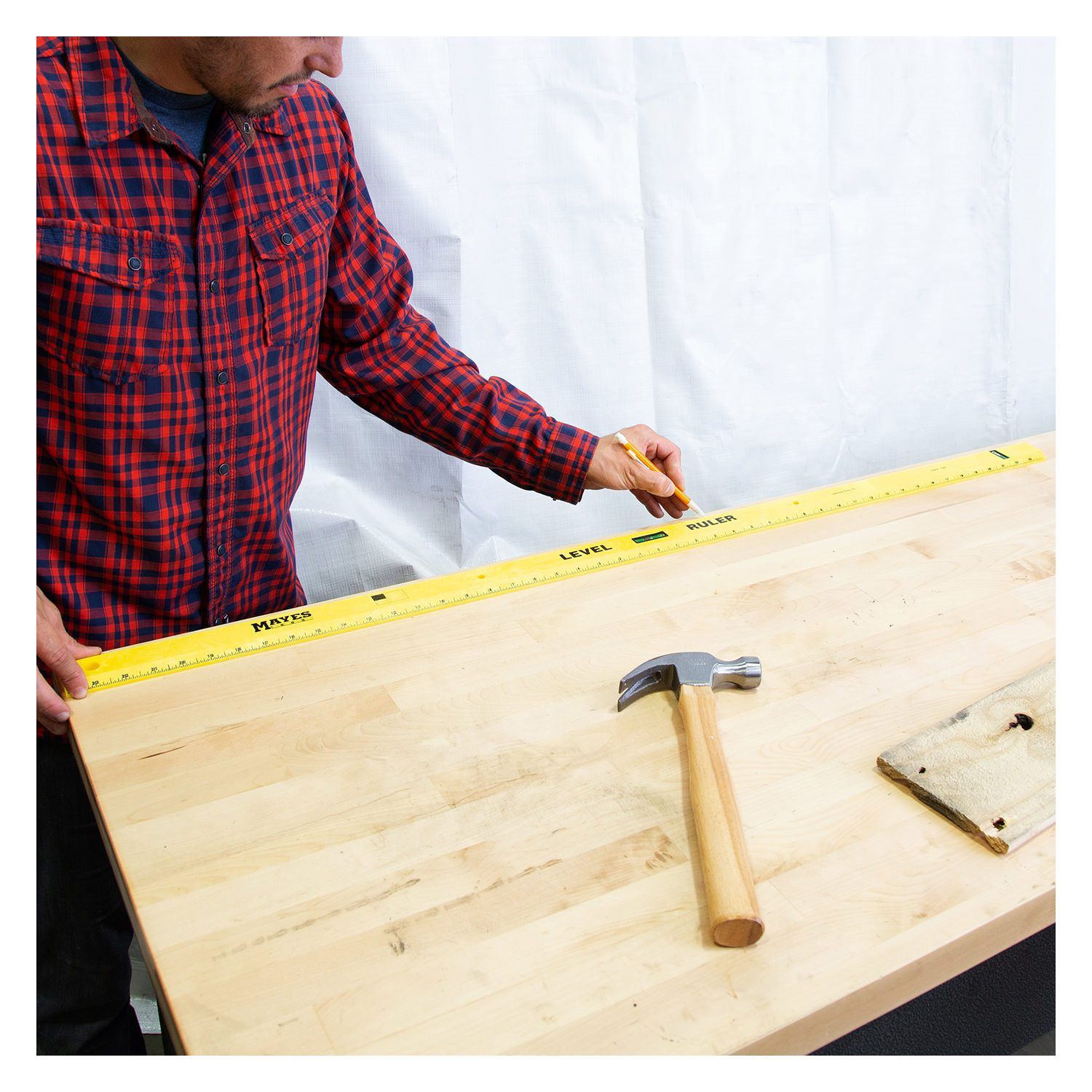 Mayes 48" Polystyrene Level Rule High-Impact Polystyrene Construction Includes Plumb and Level Vials (Accurate to 0.001 Inch) SAE and Center-Finding Scale Extra Length for Larger Projects Hang Hole for Easy Storage Made in the USA