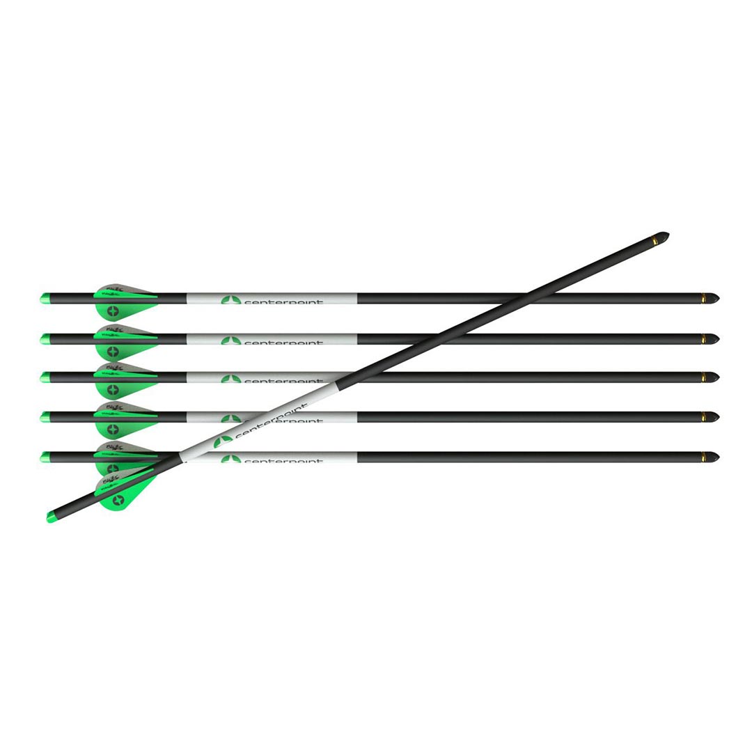 The CenterPoint 20-Inch Carbon Arrows now features green fletching. These 400-grain arrows are made of durable, high-performance carbon fiber built to withstand the high-energy demands of crossbows. Each arrow comes with a half-moon nock, fletched with 2-inch Blazer vanes, and is offered in a pack of 6 to keep you supplied on the range or in the field.