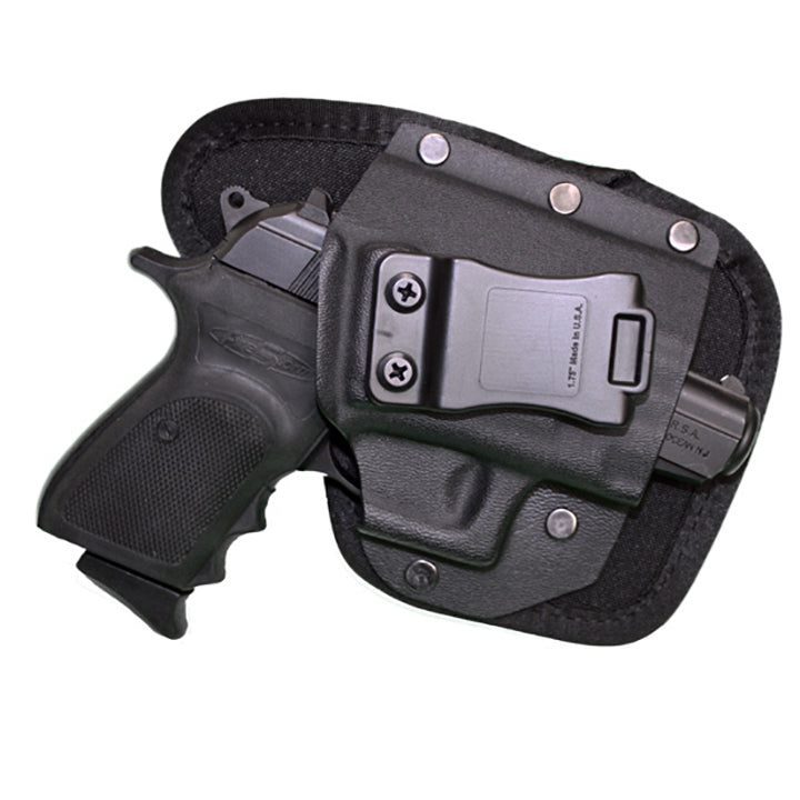 Crossfire EDC Hybrid 2.5" Semi-Auto Holster, Right Hand Compact design, wear concealed in comfort. Designed to be very comfortable. Fits multiple weapons. Clips over the outside of the pant for secure fit. Moisture barrier behind comfort panel. Breathable comfort Spacer Mesh back panel.