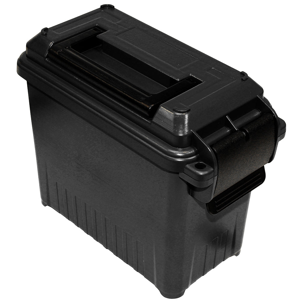 MTM Case-Gard ™s family of Ammunition Cans has grown to include a MINI size. This Mini size, is ideal for storing bulk ammo, boxed handgun ammo and 101 other uses. These comfortably handled ammo cans are molded out of rugged polypropylene plastic and will hold up to years of service. The Mini ammo can is not so mini, when you consider, it will hold 700 rounds of 9mm bulk ammo. 400 rounds 45 ACP or 223 bulk ammo. Utilizing MTM's tongue and groove O-Ring seal system for a superior water-resistant seal, Non-submersible. Double padlock tabs along with molded-in stacking ridges, make these solid containers the perfect solution to so many storage needs. 12-pound carry capacity. Made in the USA
