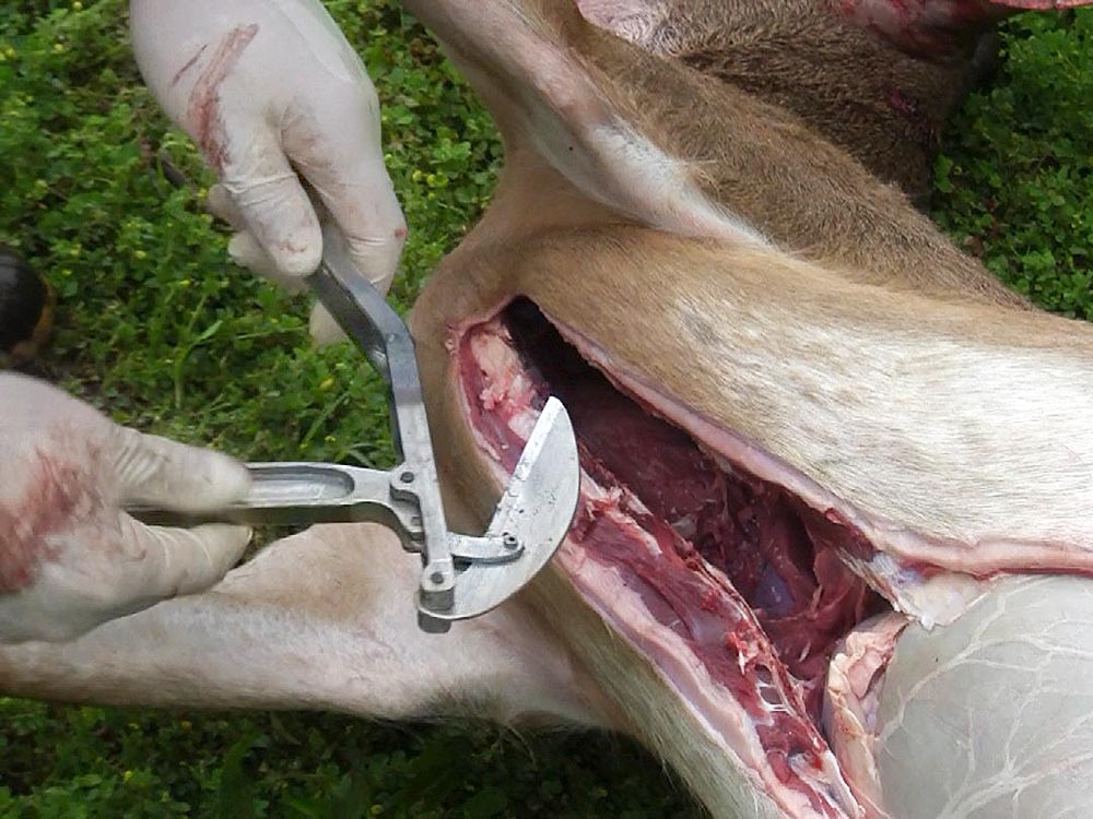 Keep your knife sharp because you don ™t have to dull it cutting the chest open or splitting the pelvic bone You keep your hands outside the animal and this eliminates puncturing anything inside And it eliminates the risk of cutting yourself or someone else with a knife while cutting through these difficult areas.