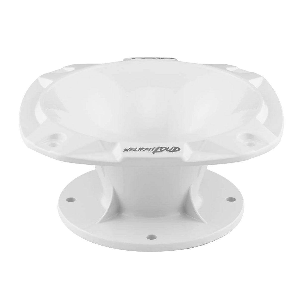 DS18 2" Horn Tweeter Body, Bolt-On - White (NO Driver) (Sold Each) Color: White Material: Aluminum Installation Type: Bolt-On Throat Diameter: 2" Horn Coverage: 57 deg Overall Diameter: 7.08" Overall Depth: 2.96" Driver Bolt Pattern: 4.05" Mounting Bolt Pattern: 6.33" Pattern: M6 - 4"