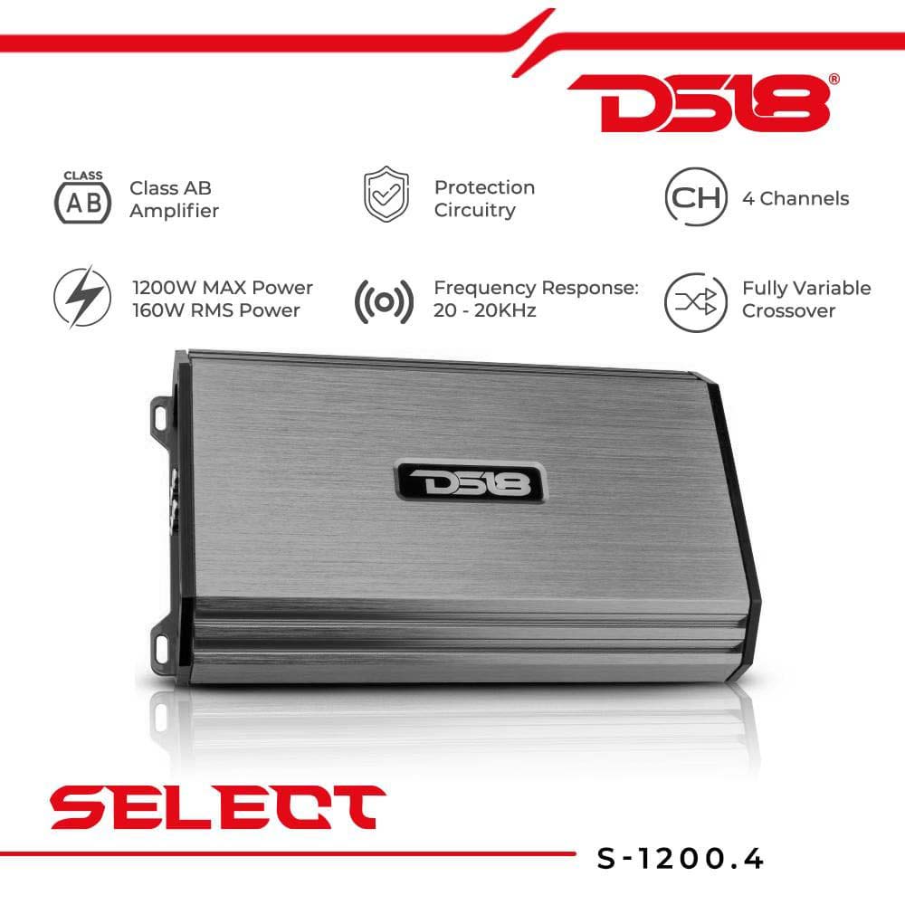 DS18 4 Channel Class A/B Amplifier, 160W RMS/1200W MAX - Silver