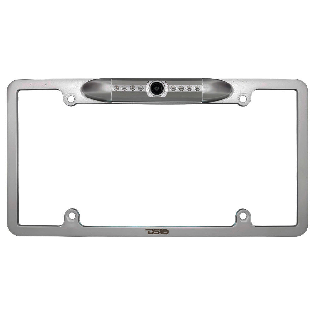 DS18 License Frame Rearview Camera with Parking Lines and Night Vision LEDs (Silver)